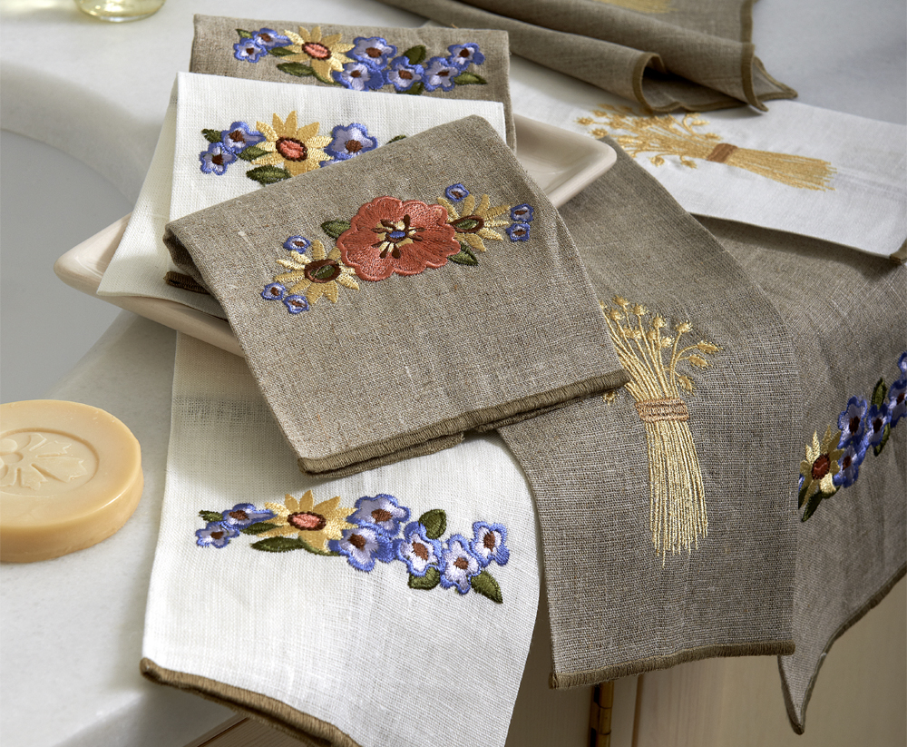 %100 keten kumaşla Türkiye’de üretilmiş nakışlı 2’li set küçük el havluları