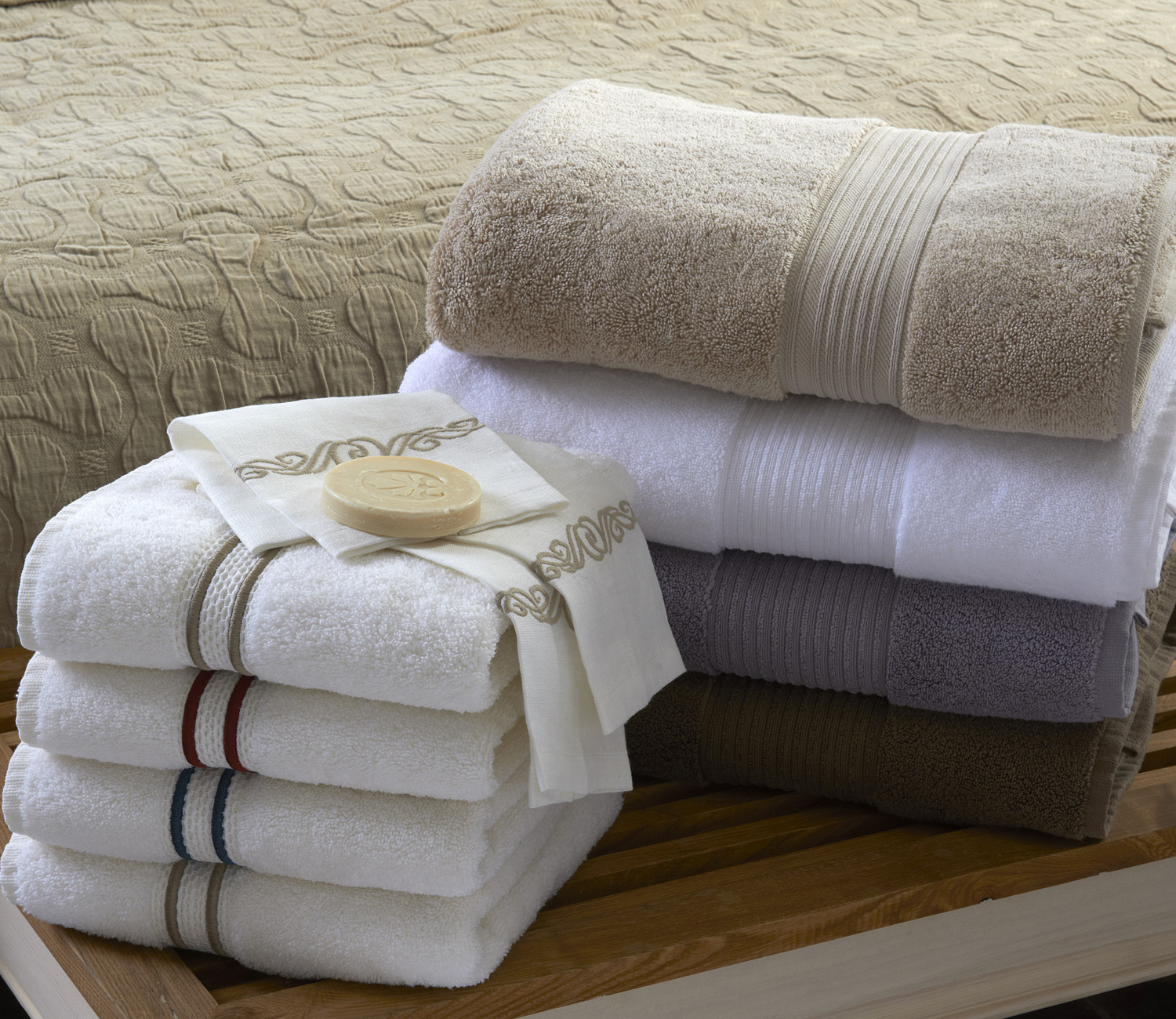 * Mikro koton: Üretiminde kullanılan yüksek kalite uzun elyaflı pamuk sayesinde daha fazla su emme kapasitesine ve kabarık bir görünüme sahiptir, havluda lüksü simgeler